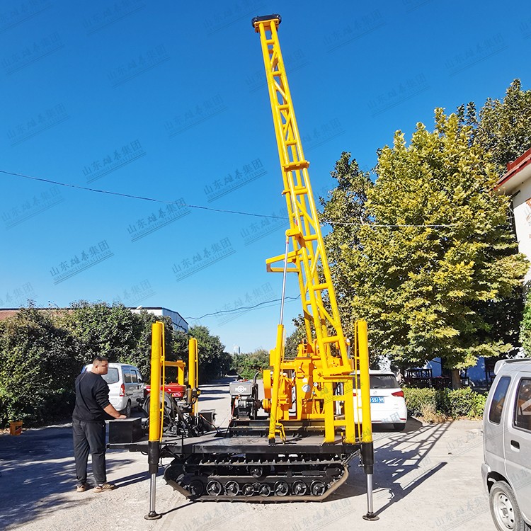 1、鉆機(jī)采用折疊式液壓鉆塔,操作省時(shí)省力可靠。